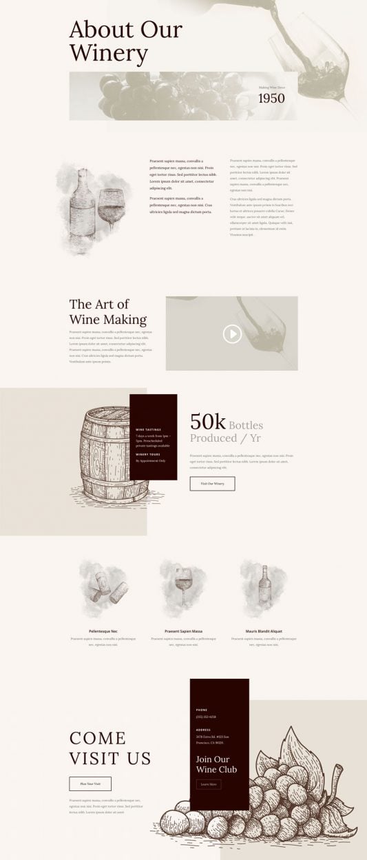 Fitur: integrasi e-commerce, galeri kebun anggur, testimoni -